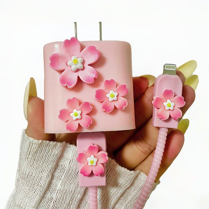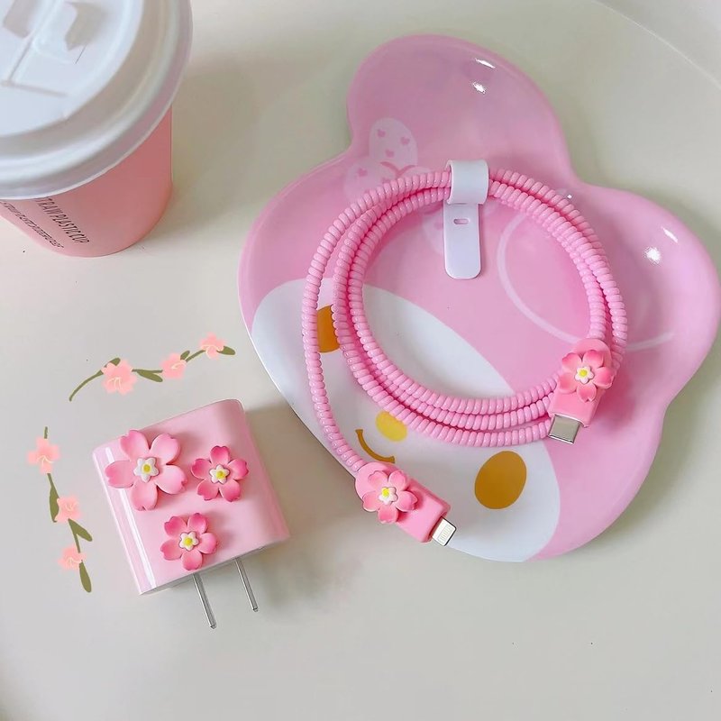 - [Ideal gift] This protective cover with fashion pink 3D flower cherry blossom design to decorate the charging cable plug, attracting attention and extending the service life of the plug data cable without affecting charging and heat dissipation. It is a great mobile phone accessory that can be given as a gift to children, family, and friends who are troubled by problems such as damaged data cable interfaces.