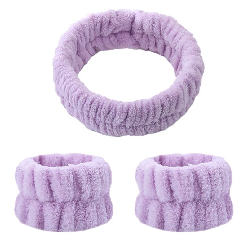 YIYEI Face Wash Headbands Wristbands, Spa Headband with Matching Wristbands,Headbands Wrist Towels for Girls Washing Face Makeup Skincare Prevent Water Running Down (Light Violet)