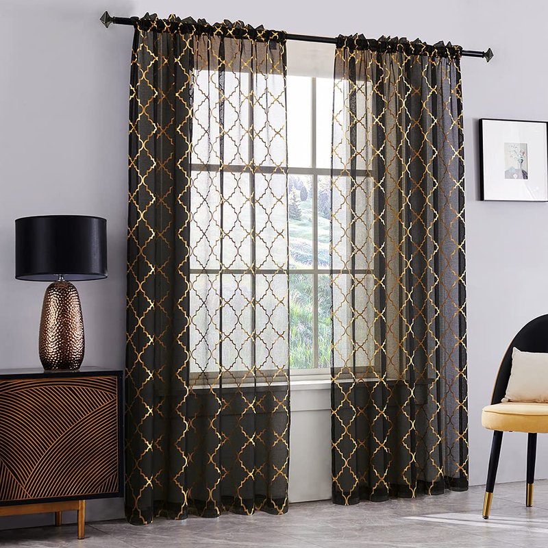 - Elegant & Modern Design -Gorgeous Design Moroccan tile on these black and gold curtains with decorate your windows with a delicate and fantastic style.They make your room look so warm and cozy. Black and gold sheer curtains are perfect for dining room nursery and bedroom.
