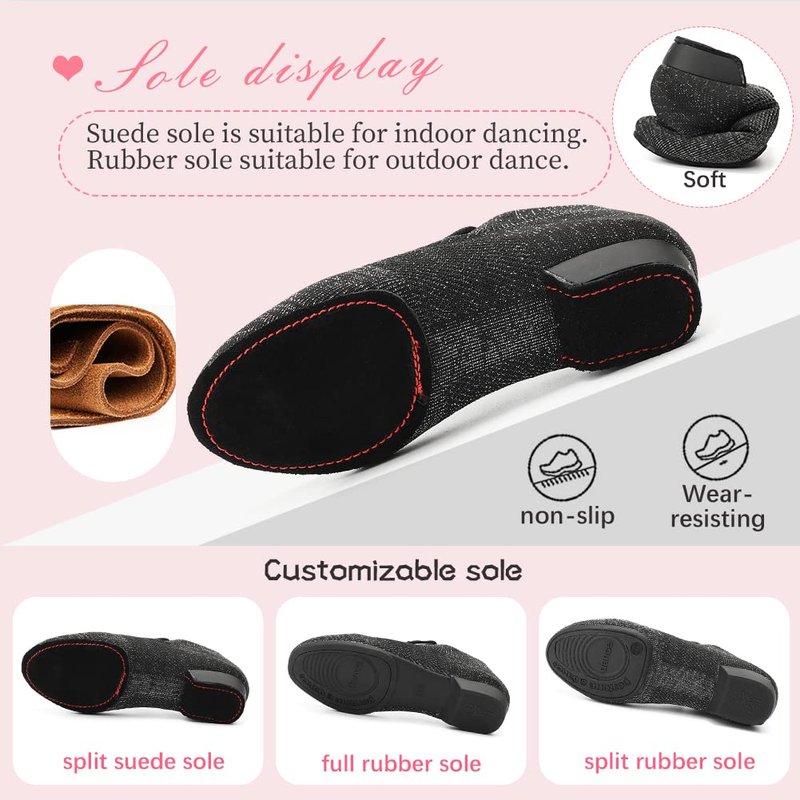 - Design:Classic simple style matches low-heeled design,which is more suitable for long-term dance practice, and the foot-covered design makes the shoes fit better and dance more relaxed.