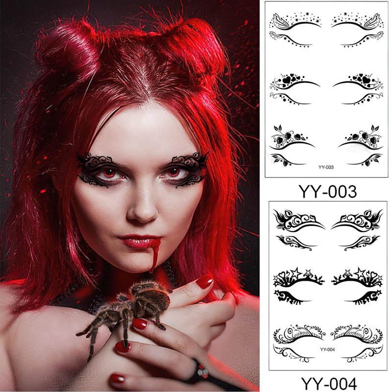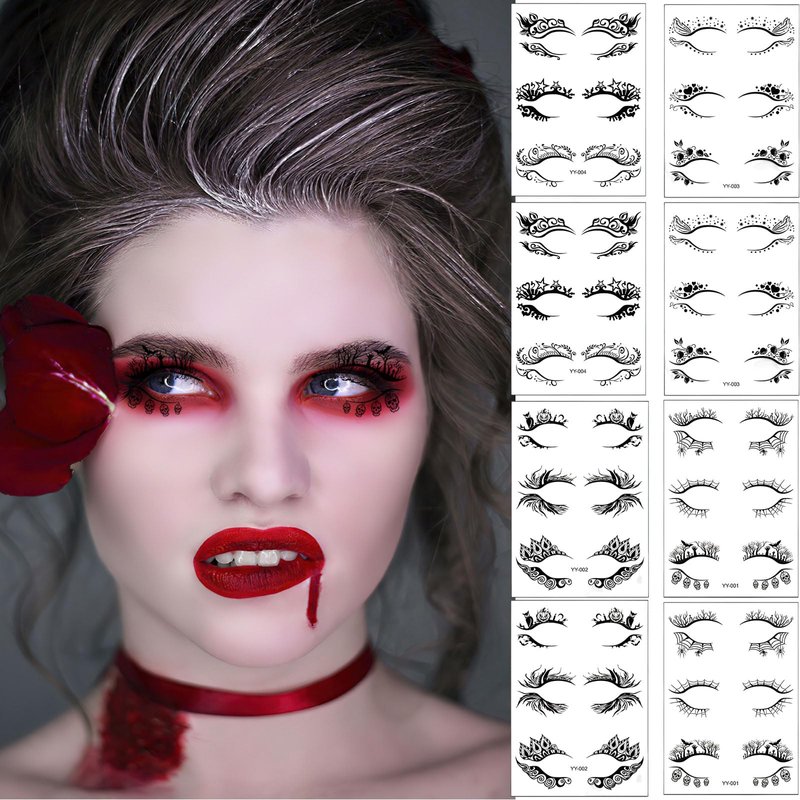 - 💓【Fashion Style】: 8 Sheets Facial Eyeliner Tattoo Sticker contains 4 Style patterns and shapes, black color is classic and charming, adding mystery to Halloween!