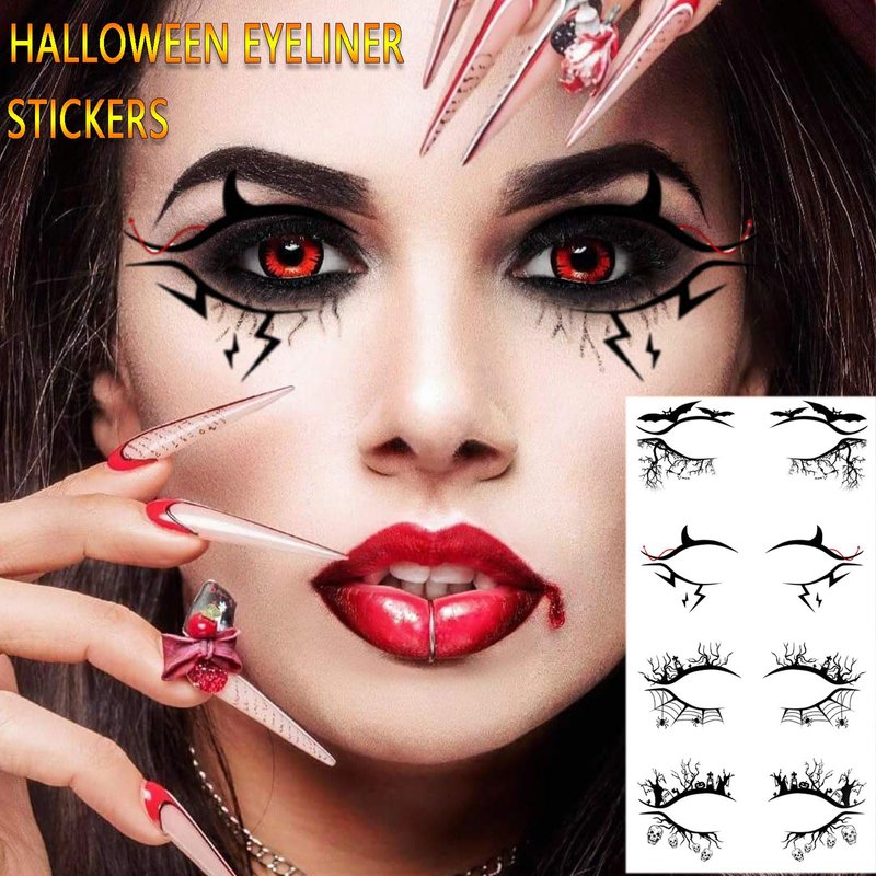 - 【Versatile】- These Halloween eyeliner stickers are perfect for creating spooky eye makeup looks for parties and celebrations.
