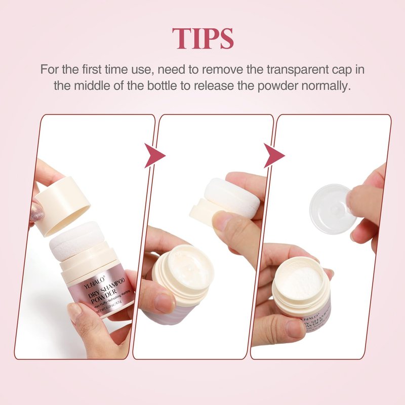 - Easy To Use :Take out the inner stopper and shake the bottle to let the powder release. Gently pat onto oily scalp and areas needing volume. Then rub hair until it is fluffy. This dry shampoo powder can be used on all lengths, styles, cuts and colors and works for both women and men. (for the first time use, need to remove the transparent cap in the middle of the bottle to release the powder normally)