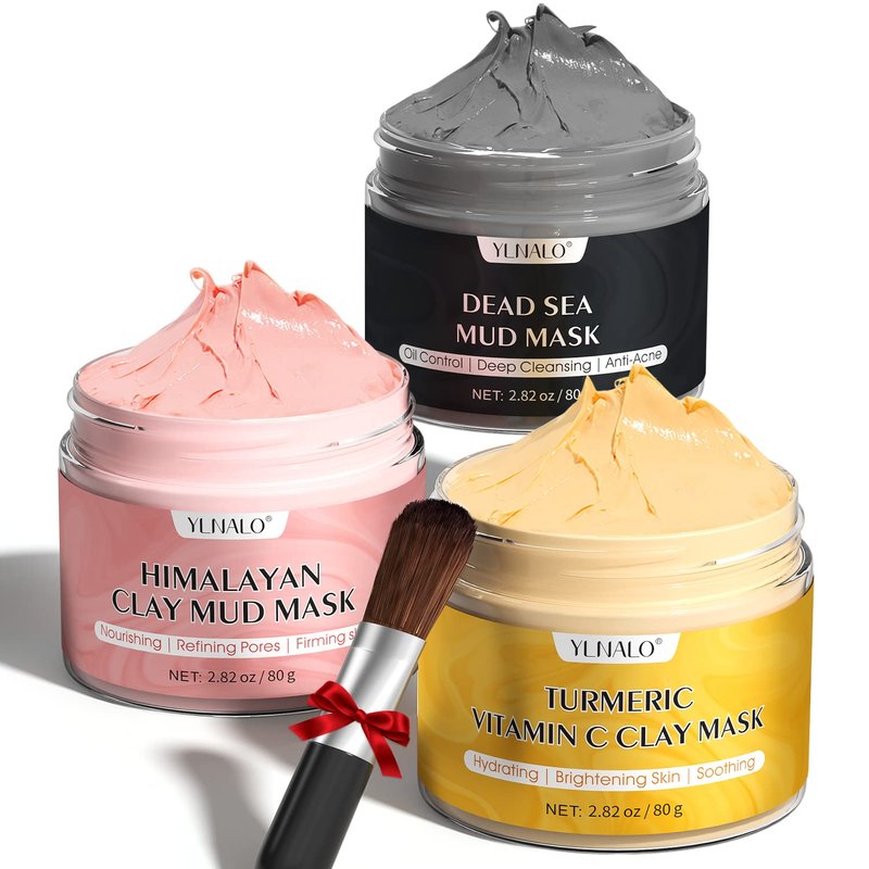 YLNALO Clay Mask Set. Turmeric Vitamin C Clay Mask, Dead Sea Mud Mask,and Himalayan Clay Mask. Pore Cleansing, Radiant Skin, Reduce Acne, and Oil Control.