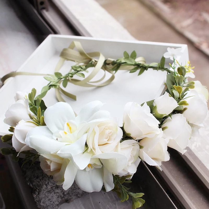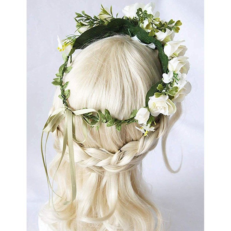 YnimioAOX Handmade Adjustable Flower Wreath Headband Halo Floral Crown Garland Headpiece,A11-pure white
