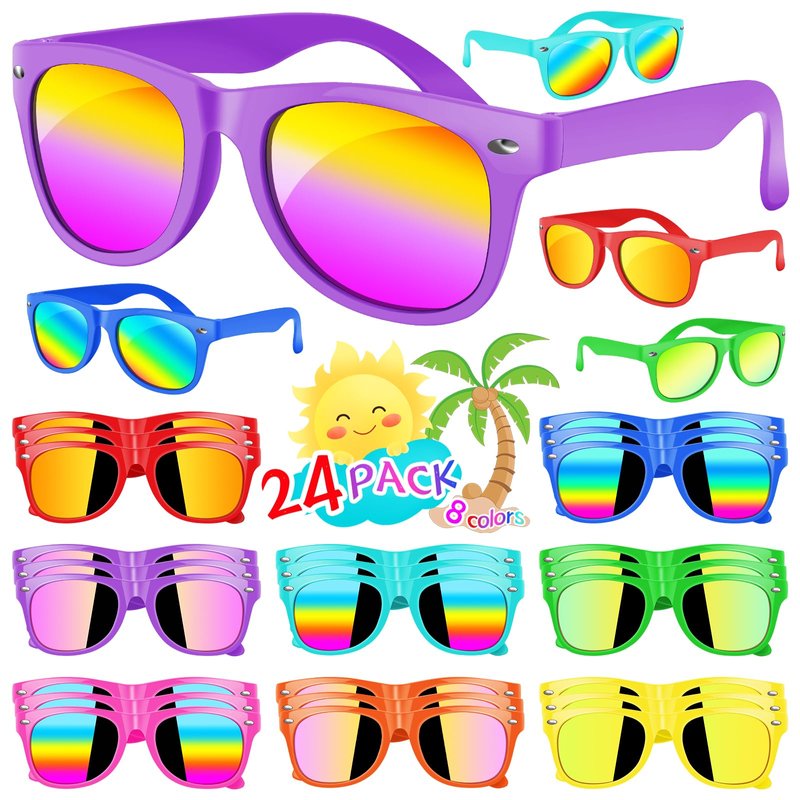 - HIGH QUALITY AND SAFETY: The kids party sunglasses are made of comfortable and sturdy polypropylene material, durable and light in weight. Our kids summer sunglasses with high-quality lenses, ensuring that children feel comfortable wearing them without any pressure or discomfort.Will bring a great experience for kids in party activities