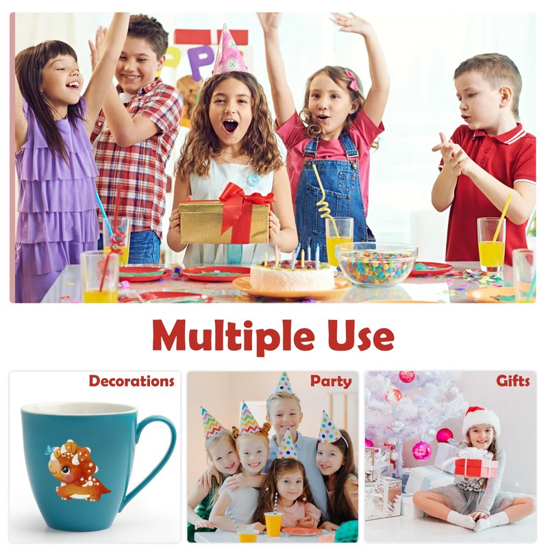 - Versatile Uses: Ideal for kids' birthdays, party favors, decorations, Easter treats, light-up toys. Stick them on skin or smooth surfaces like glass, tiles, water bottles, plastics, phone cases. Seeking glowing party essentials? Our glow-in-the-dark temporary tattoos are the perfect pick, amplifying party fun.