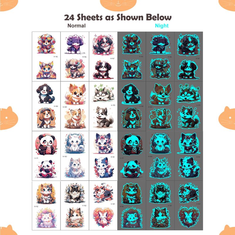 - Animal-themed Temporary Tattoos for Kids: Luminous temporary tattoos stand out even in a crowd of friends! Super cute pandas, dogs, cats, and foxes charm kids. Stylish designs fit a whole party of children!