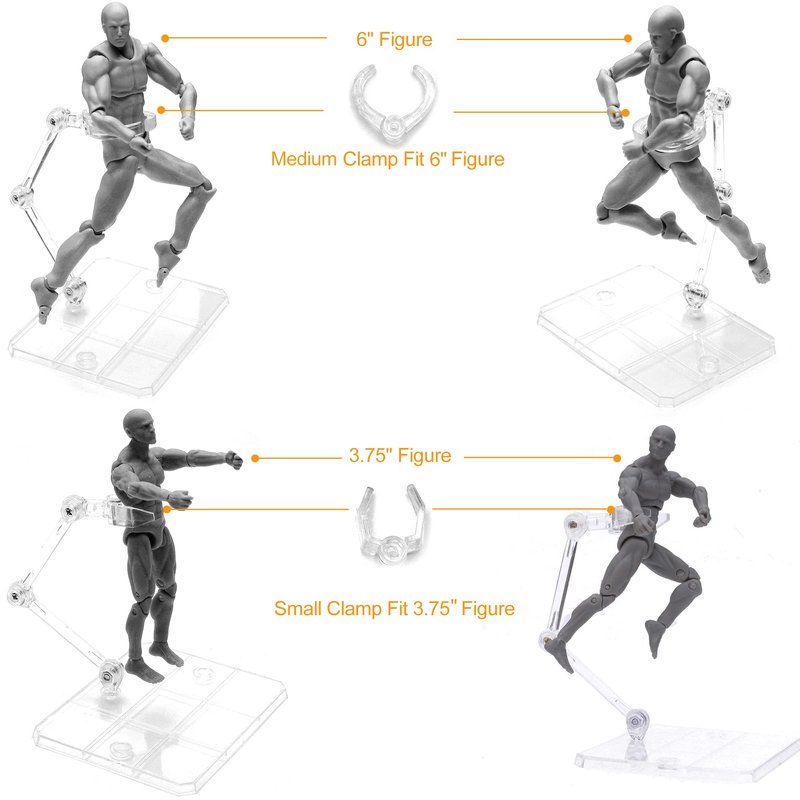 - Compatible with Different Sizes Figures - Each action figure display stand includes 3 clamp sizes, a small clamp for 3.75" figures,a medium clamp for 6" figures,a large clamp compatible with Bjd and other doll series.