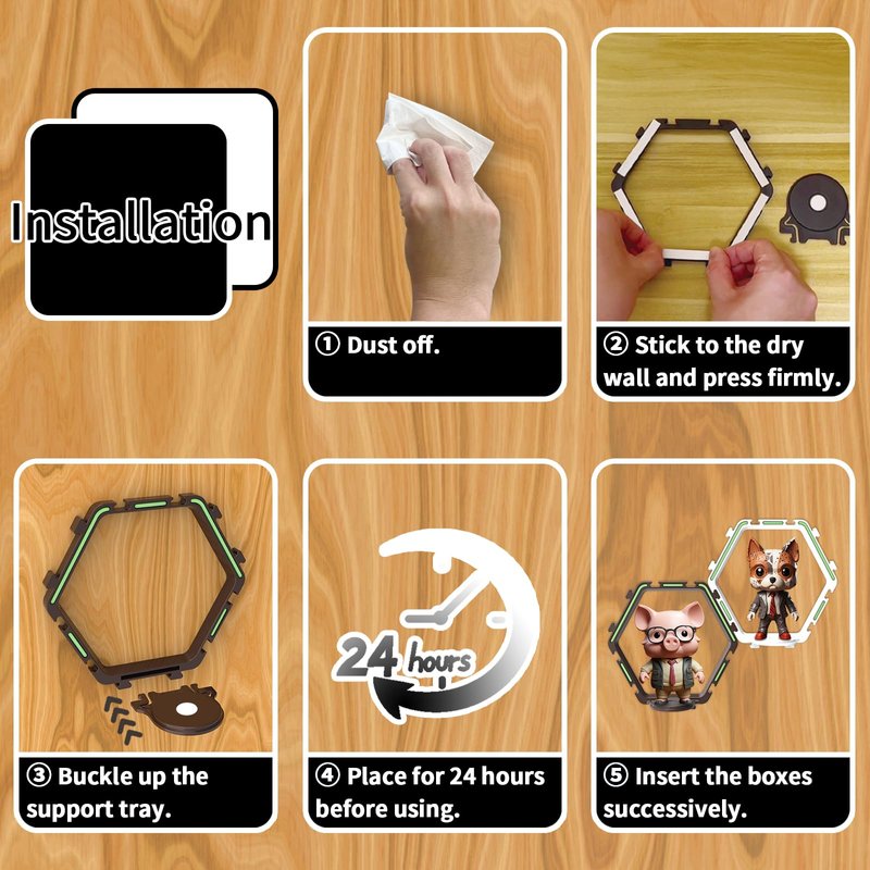 We design a warm and shiny home for your close friend POP Figures. The design was inspired by honeycombs, and we also wanted them to display well at night, so we added fluorescent material around the edges of the hexagon.Our Riser Display Shelf, giving you a special visual experience, is indeed as you need.