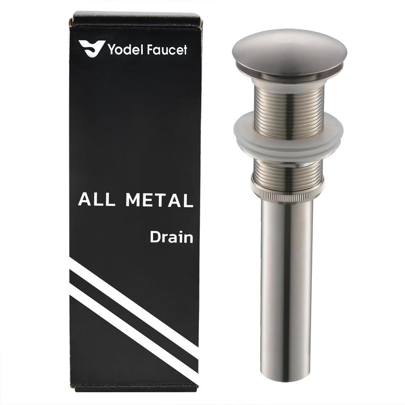 Yodel Faucet Bathroom Sink Drain Without Overflow - 1 5/8" Drain Opening - Pop Up Vessel Vanity Drain,Brushed Nickel,YDPOP-1