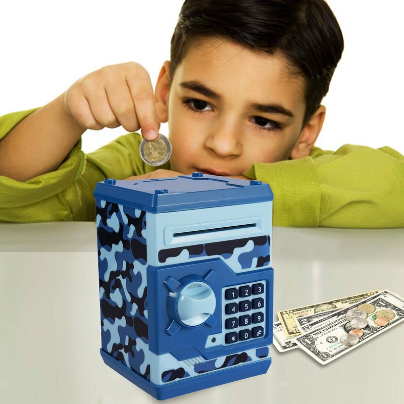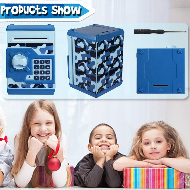 Yoego Kids Money Bank, Electronic Piggy Banks, Great Gift Toy for Kids Children, Auto Scroll Paper Money Saving Box Password Coin Bank,Perfect Toy Gifts for Boys Girls (Blue Camo)