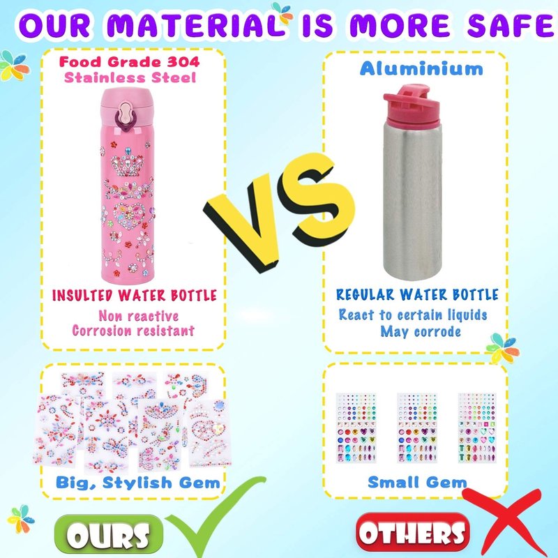- 【DECORATE WATER BOTTLE】Foster Creativity with our water bottle craft kit, simply peel the gems from the sticker, apply them to make a unique water bottle, easy & fun for kids at a young age as well