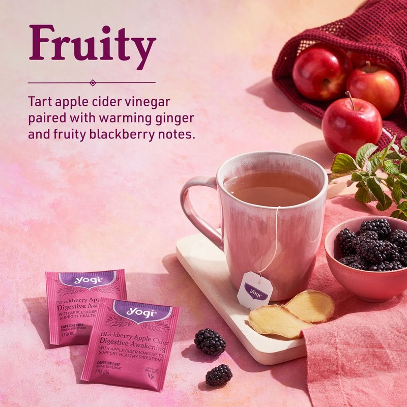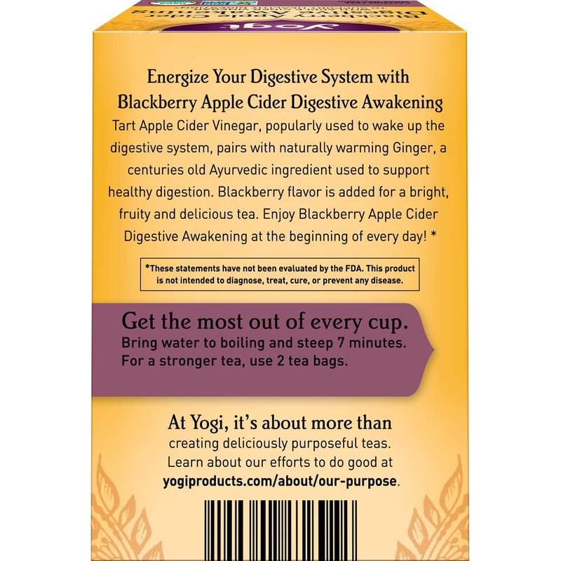 - Organic Digestive Tea: Energize your digestive system with Yogi Blackberry Apple Cider Digestive Awakening tea