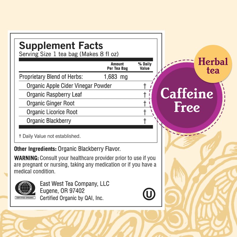- Support Digestive Health: Apple Cider Vinegar pairs with Ginger to help support healthy digestion; Blackberry flavor is added to impart bright and fruity notes to this caffeine-free tea