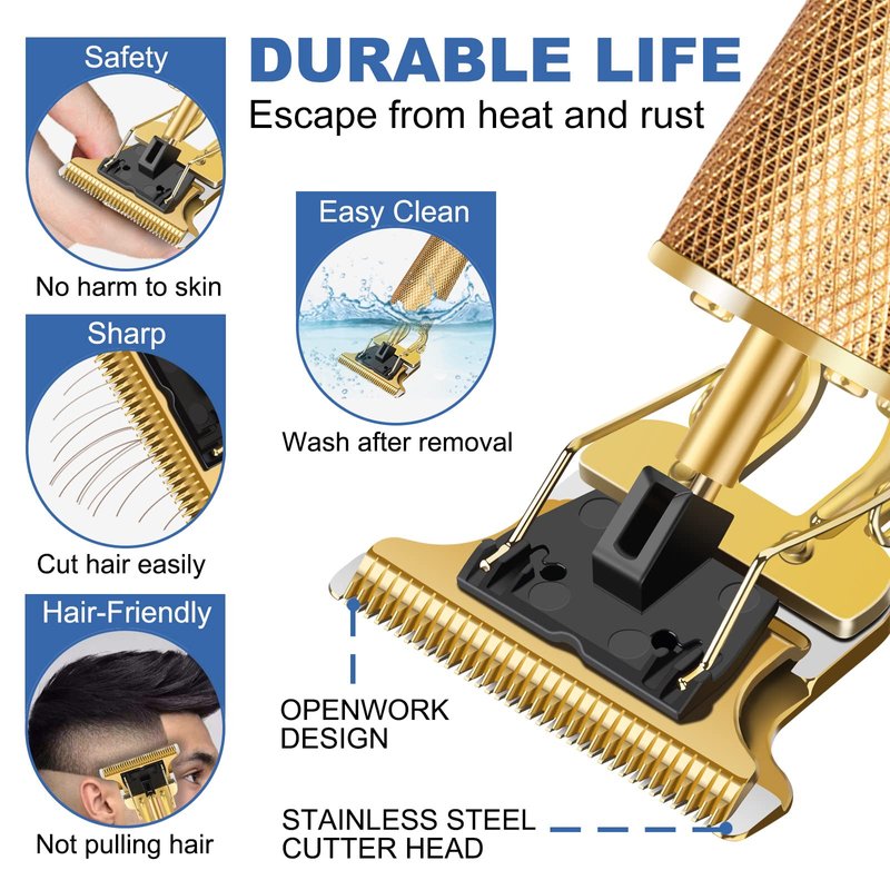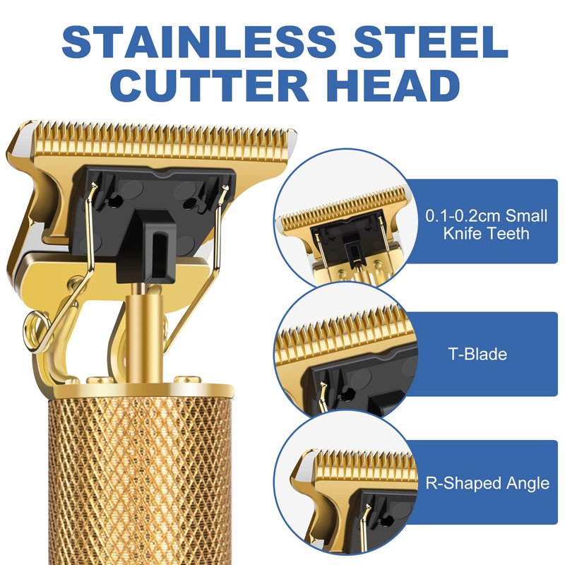 - 【T-Style Zero-Gap Cutter Head】Adorned with a precision-crafted T-shaped stainless steel cutter head, 4cm wide, this clipper seamlessly blends artistry with function. Its razor-sharp blades glide through hair effortlessly, ensuring a smooth cut without any skin irritation. A protective cover shields the cutter head from wear, allowing for hassle-free cleaning under running water.
