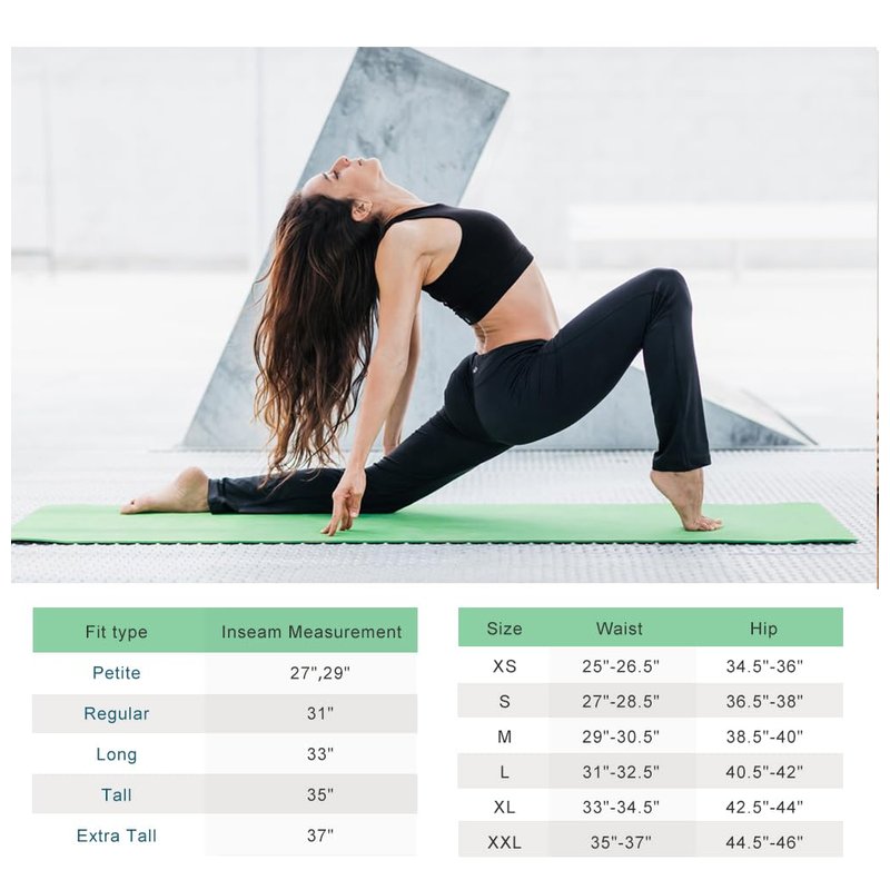 Yogipace,2 Back Pockets,Petite Women's Straight Leg Yoga Pants Workout Pants Slim Fit,27",Black,Size XS