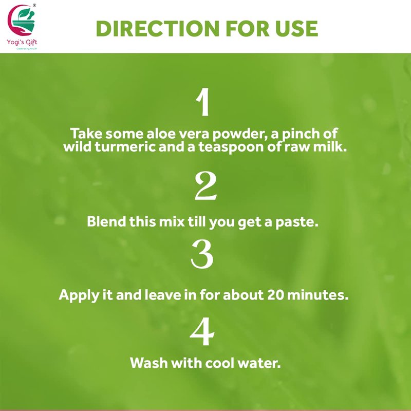 - ★ 𝐀𝐥𝐨𝐞 𝐯𝐞𝐫𝐚 𝐩𝐨𝐰𝐝𝐞𝐫: Natural antiseptic properties found in Aloe vera leaf powder can aid mitigating scars and dark spots and control skin and scalp irritations. It is a potent moisturiser that will leave damaged skin moisturised and supple