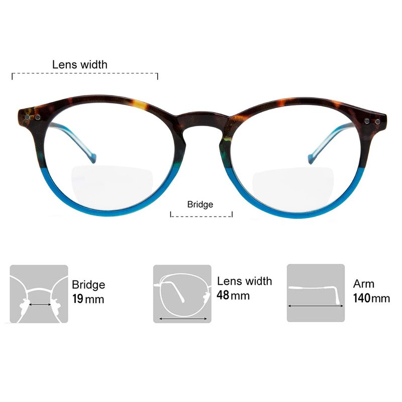 - VERSATILE & MULTIPURPOSE: These bifocal reading glasses are perfect for wearing when working at the office, using a PC, reading a book, driving a car, and more! Lens Width: 52mm, Bridge: 17mm, Arm:140mm.