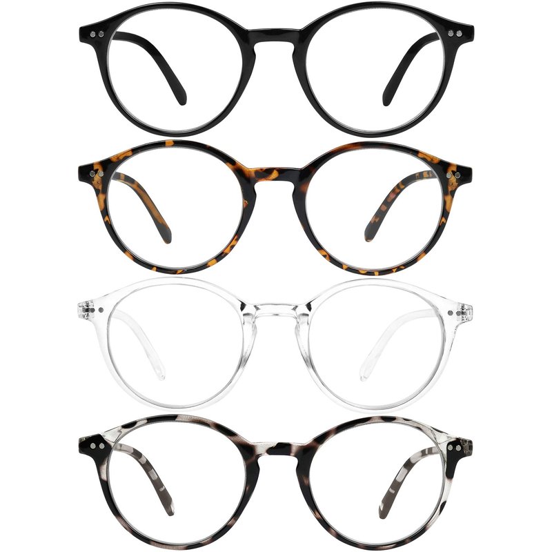 - Color: 4 Pack: Black, Brown Havana, Leopard and Clear