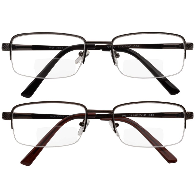 Yogo Vision Reading Glasses Set of 2 Bifocal Half Rim Metal Glasses for Reading Quality Spring Hinge Readers Men and Women +2.5