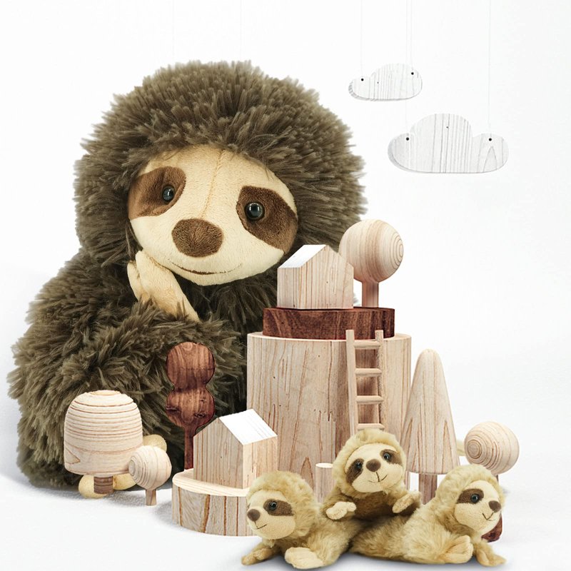 - 【NEW FUNCTION】One big sloth with 3 babies. Zip 3 babies into the the back of the mum-sloth for new way of playing and easy storage. The mum-sloth have a weighted bottom so it can sit up on its own. 3 babies are also super soft and doubles as a rattle for endless play and entertainment. The interesting new playing way stimulates kids' imagination and creativity, each sloths are furry and cute, making them an adorable addition for snuggling and playing.