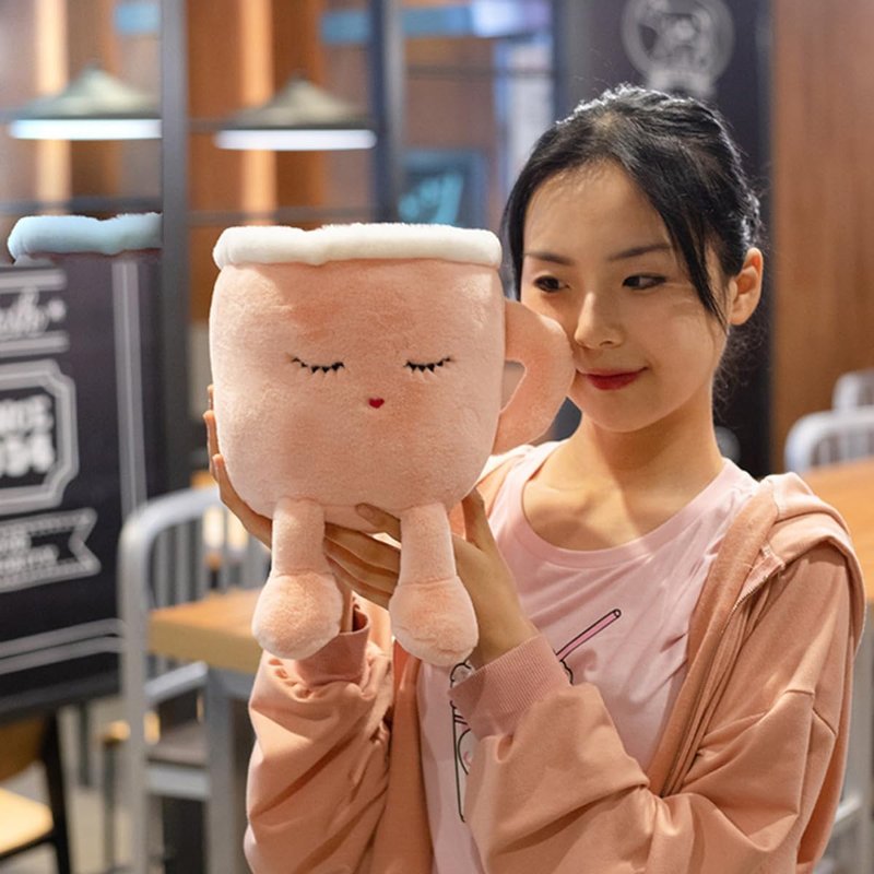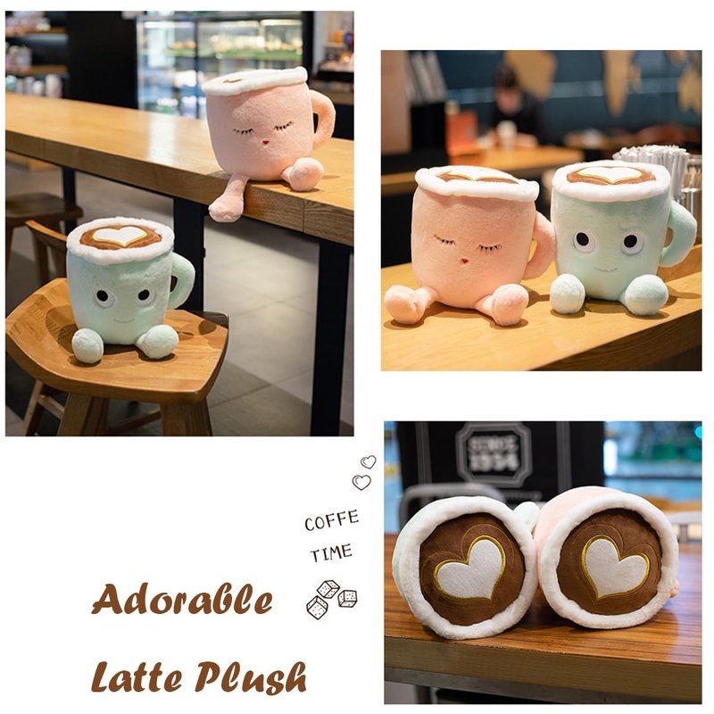 - Our coffee cup plush has delicate embroidered face with Soft feet. When you hold it in your arms, you will light-hearted and soft just like drink a hot latte