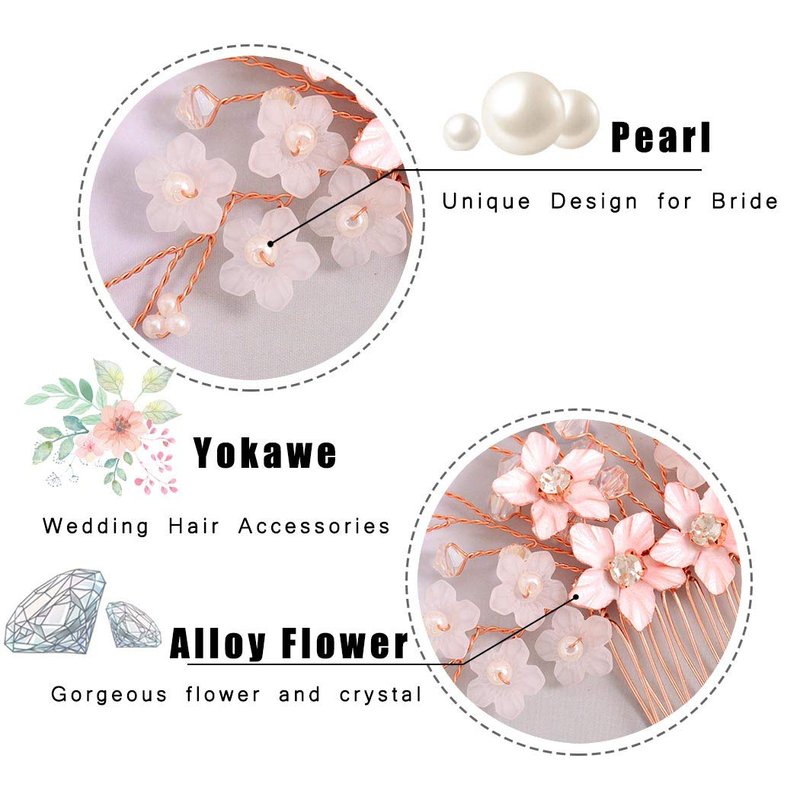 Yokawe Bridal Wedding Hair Comb Rose Gold Crystal Bride Side Combs Flower and Pearl Hair Accessories for Women and Girls