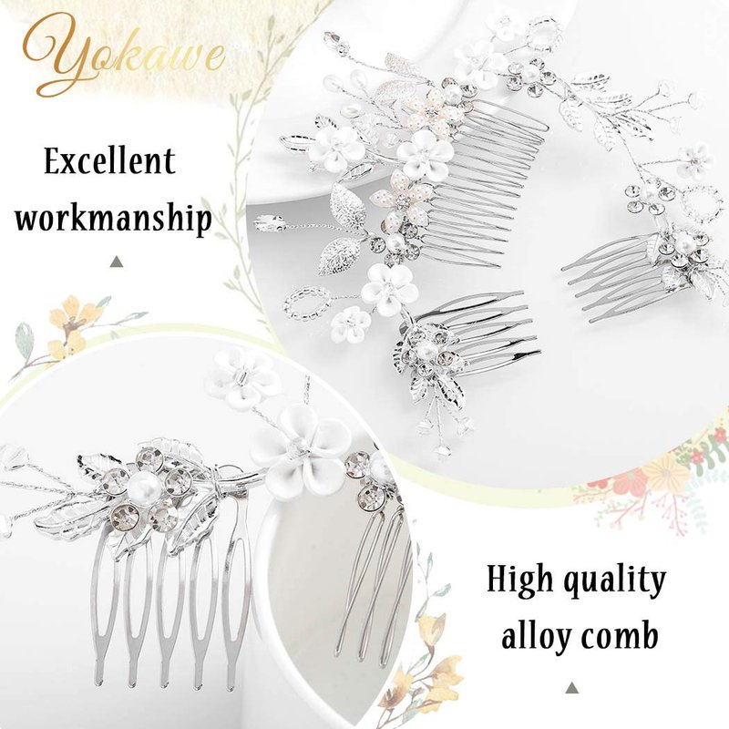 Yokawe Bridal Wedding Hair Comb Silver Crystal Bride Side Combs Flower and Leaf Hair Accessories for Women and Girls