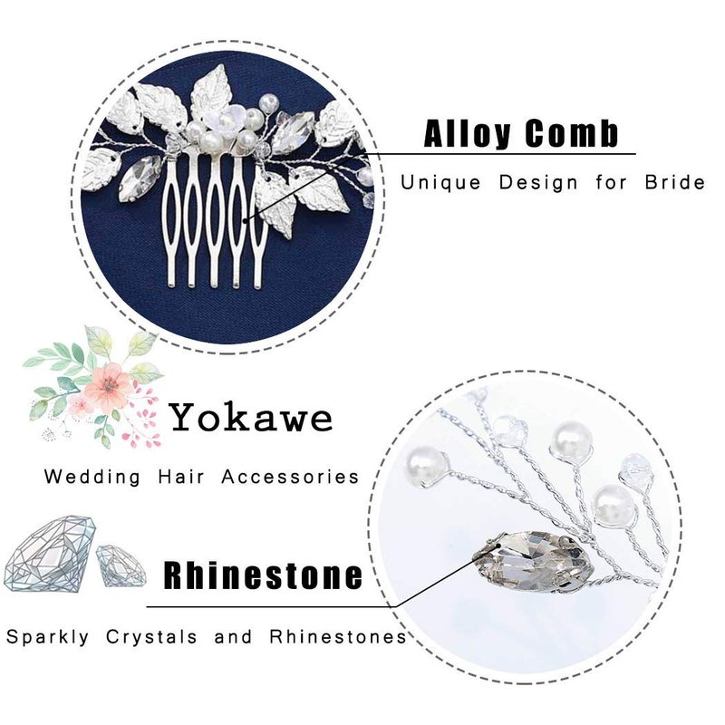 Yokawe Bridal Wedding Hair Comb Silver Rhineston Bride Side Combs Pearl Hair Accessories for Women and Girls