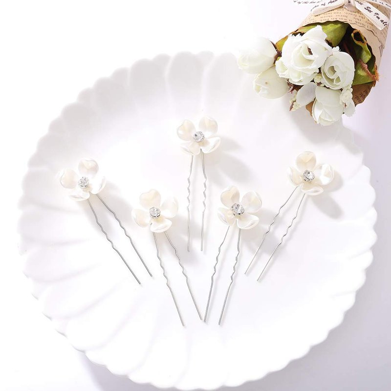 - Bride wedding hair pins made of elegant white flower and high quality alloy. Creative design and excellent workmanship.(Pack of 5)