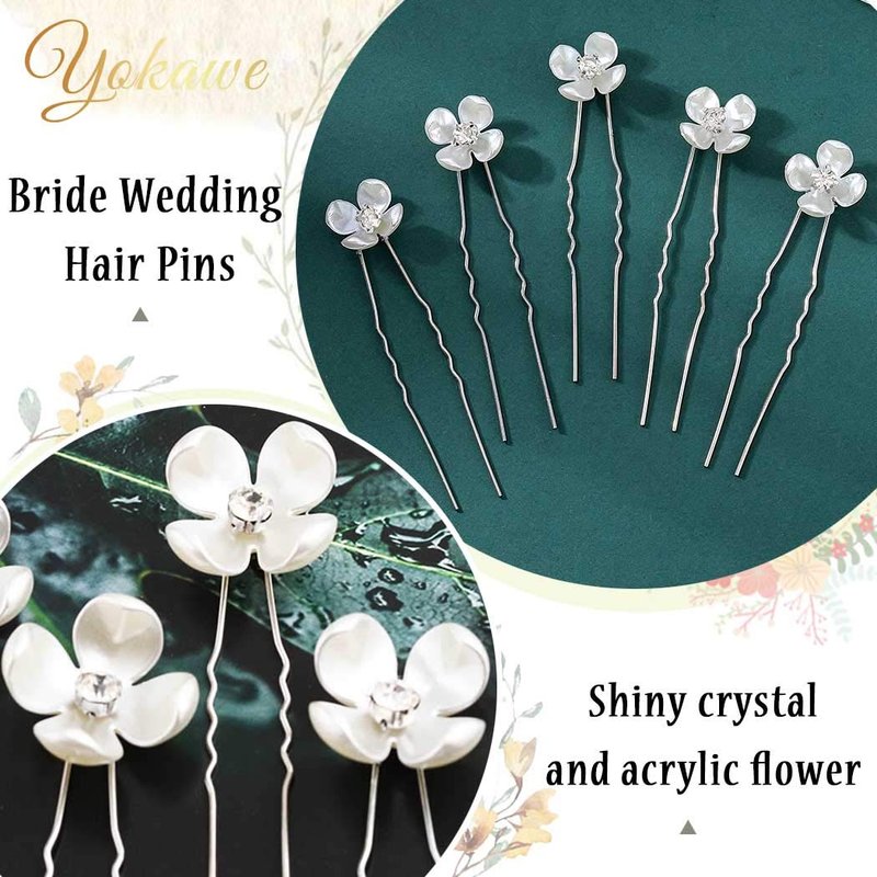 Yokawe Bridal Wedding Hair Pins Silver Bride Hairpin Flower Hair Accessories for Women and Girls (Pack of 5)