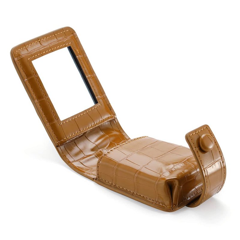 Yokawe Lipstick Case with Mirror Cosmetic Bag Travel Makeup Mini Bag Lipstick Holder for Purse Lipstick Organizer for Women (Coffee)