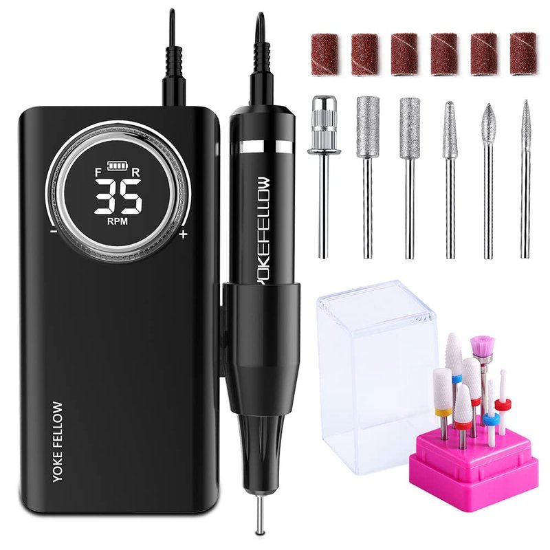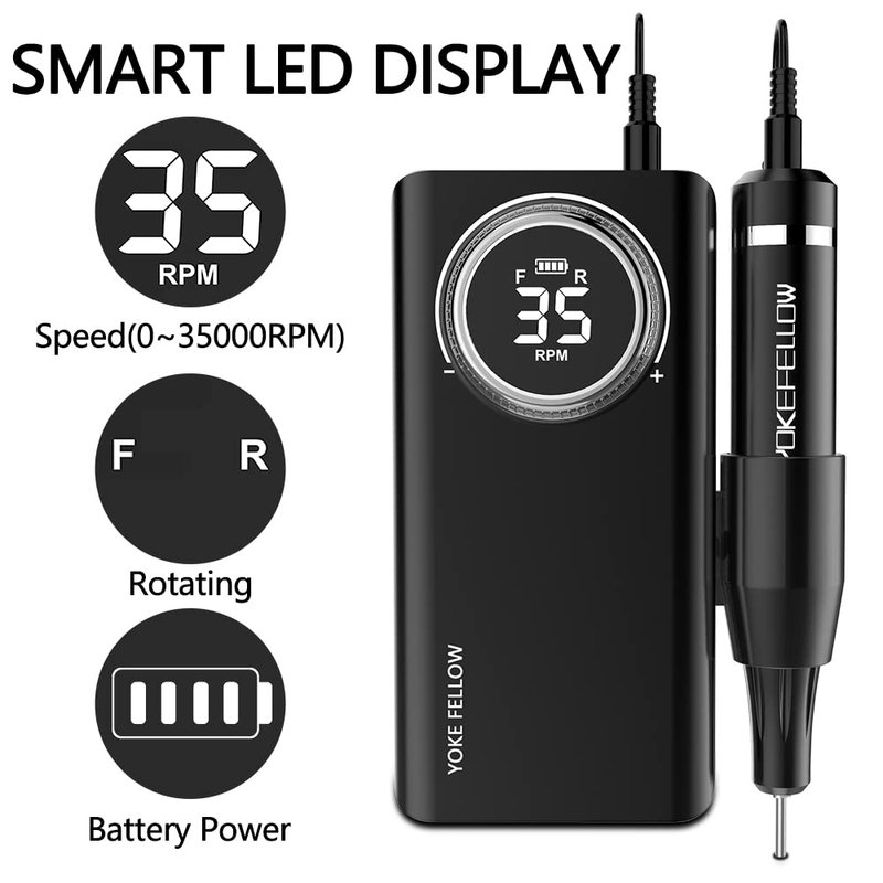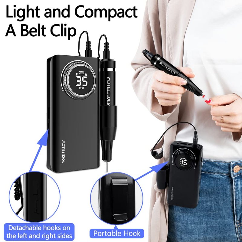 - [100% After-sales Service]YOKE FELLOW rechargeable nail drill has passed the RoHS MSDS CE certificate, the fuselage design combining technology and art and healthy and environmentally friendly skin-friendly materials. Provide you with a safe and best nail experience. If you don't like this nail drill for any reason, you can contact us directly and we will try our best to service you well.