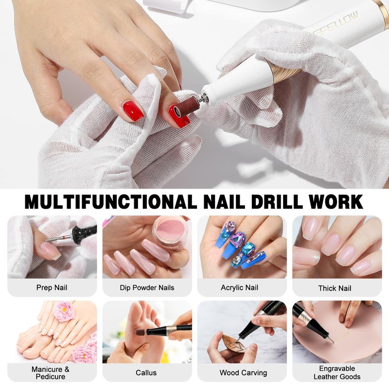 - [Multifunctional]:Perfect for removed gel nail polish ,prep nail,Dip powder nails ,acrylic nail, thick nail ,pedicure ,wood carving ,engravable leather goods , home and nail salon use.