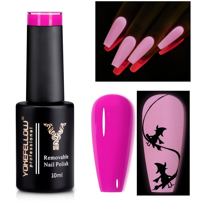 YOKE FELLOW Glow in the Dark Gel Nail Polish, 10ML Soak Off UV Glows Luminous Effect Gel Polish Fluorescent Bright Purple for Salon or DIY At Home