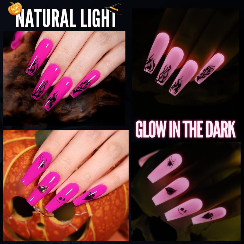 - [ SOLID COLOR EFFECT & LUMINOUS EFFECT ]- Our gel nail polish is versatile and it can create two effect on your nails, can be used as a normal solid color gel polish for daily life and work, but also can be used in the evening for going to parties, Halloween and other celebrations, luminous at night is more obvious, make you the most attractive one in the crowd, will definitely bring you a surprise and a good experience.