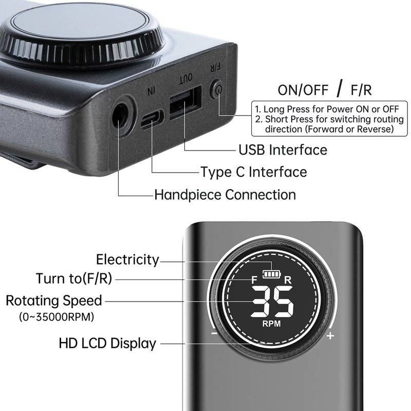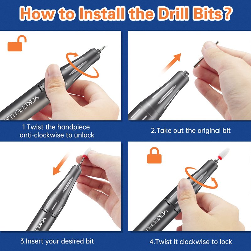 - [ Easy to Use ]: Switch Forward and Reverse Rotating suitable for Right-handers or Left-handers. Twist lock chunk for hold bits tightly and quick bits release.It is perfect for both home and salon use, for carving, engraving, routing, grinding, sharpening, sanding, cutting, polishing, drilling, and perfect for pet nail sanding, very suitable for nail polishing.