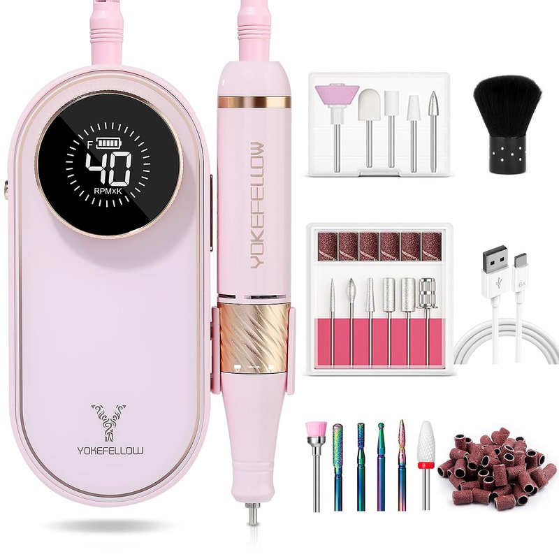 YOKE FELLOW Nail Drill Machine - 40000 RPM Electric Nail File Nail Drills for Acrylic Nails Professional with 12 Drill Bits Manicure Pedicure Polishing Nail Drill for Home Use