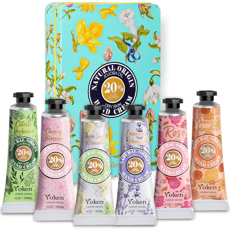 Yoken Shea Butter Hand Cream Gift Set, 6 Soothing Moisturizing Scents in Delicate Tins, 6 x 1 OZ