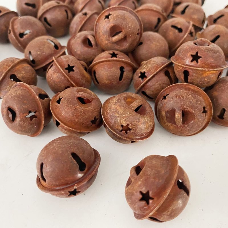 Yokoke 50PCS Christmas Rusty Tin Jingle Bells Country Primitive Farmhouse Rustic Metal Bells Sleigh for Christmas Tree Ornament Holiday Everyday Hanging Crafting and Embellishing