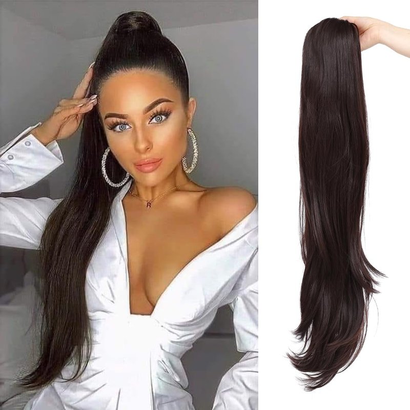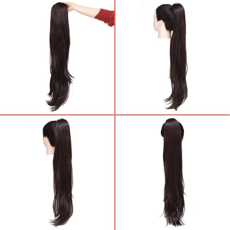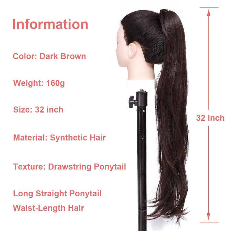 YOLANFAIRY 32 Inch Long Straight Drawstring Ponytail Extension Synthetic Hair Extensions Ponytail Natural Soft Fake Pony Tail Hair Pieces for Women (Dark Brown)