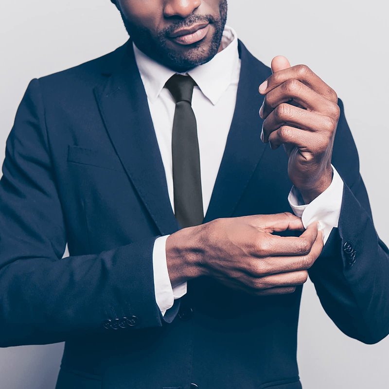 - π Suitable for both men and women - Mens black tie length: 50cm (19.7"), widest: 8cm (3.15"), suitable for most men, women, or older boys, when wearing a black clip-on tie, it looks like a self-tie skinny tie. They are ideal for security officers and employees who work in high-profile environments and need to put safety first.