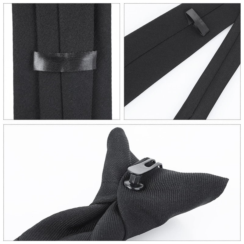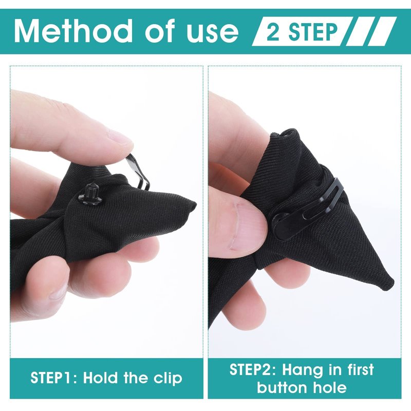 - πOne second to put on and take off to go out - black clip on tie with clip-on design, you don't need to spend too much time wearing it, don't worry about not tying it properly, also allows you to sleep 5 minutes more every morning, just one click, clip on shirt adjust the angle to go out immediately.
