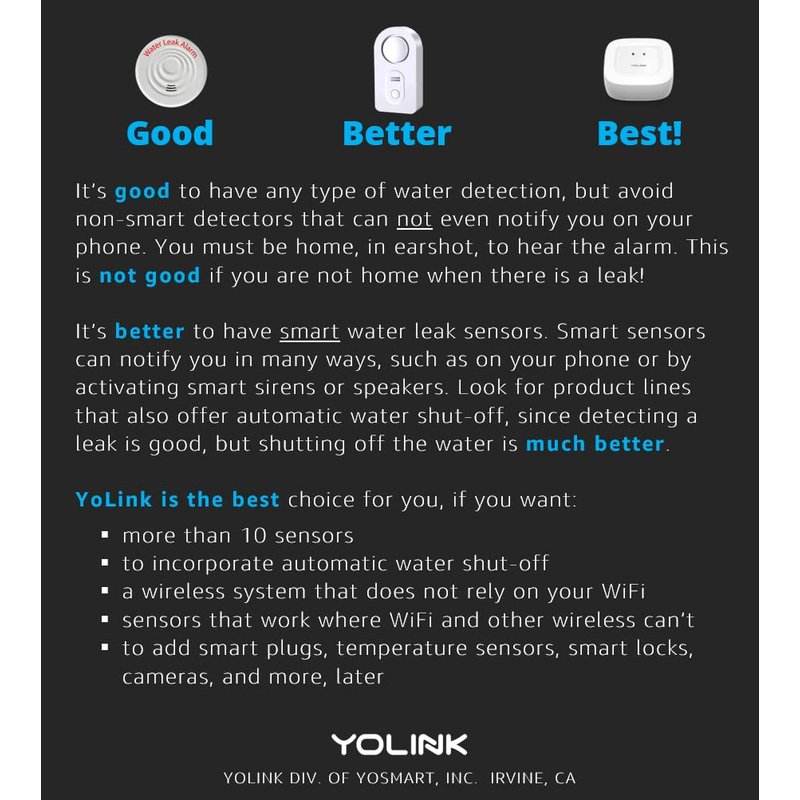 YoLink Water Leak Sensor 3-Pack, LoRa Up to 1/4 Mile Open-Air Range Smart Water Leak & Flood Detector, SMS/Text, Email & Push Notifications, w/Alexa, IFTTT, Home Assistant - YoLink Hub Required