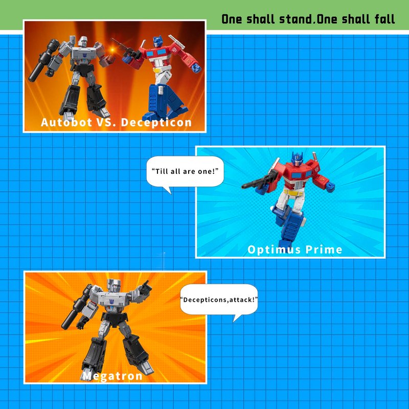- ðOFFICIAL LICENSED TRANSFORMERS G1 ACTION FIGURES - Crafted with precision and care,these collectible Transformers action figures showcases Optimus Prime and Megatron in their iconic robot form,each coming with 2 pairs of interchangeable flexible hands and 1 weaponry(ion blaster,rail cannon).Kids can imagine mighty adventures from Autobot and Decepticon squads!