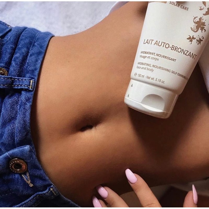 - HOW TO USE : Exfoliate the body first using Gommage Doux or a Sugar Scrub. Then apply a small bit of Lait Hydratant to rough areas (like elbows and knees). Start with the legs and work upward, applying Lait Auto-Bronzant in an even layer. Dry for 5 minutes before dressing.