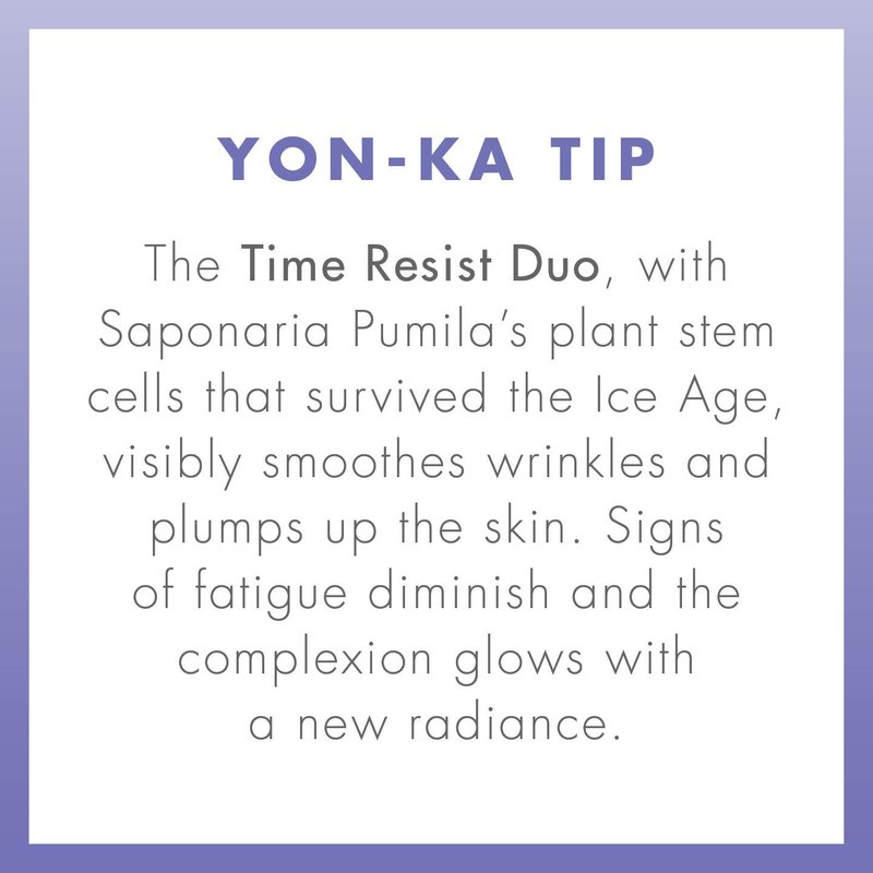 - HOW TO USE : Discover a new application gesture with the touch & slide airless jar. it delivers the right dose of cream by pressing down once on the cap. After cleansing and spraying on some Yon-Ka Lotion, apply the TIME RESIST day cream in the morning and TIME RESIST night cream in the evening to the neck, face and décolleté.