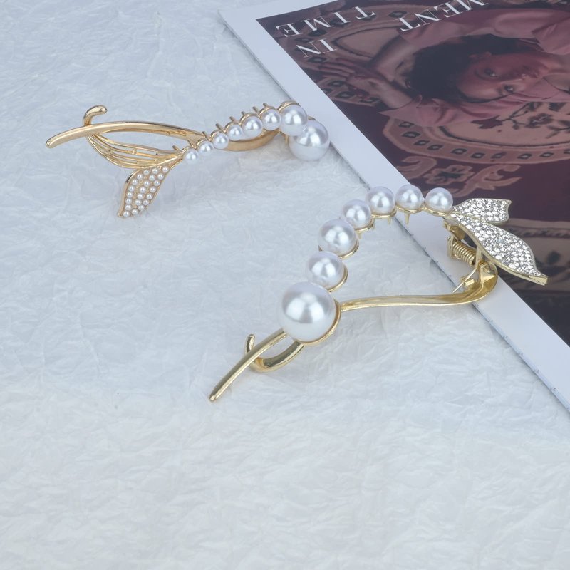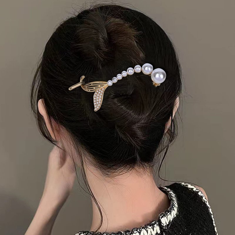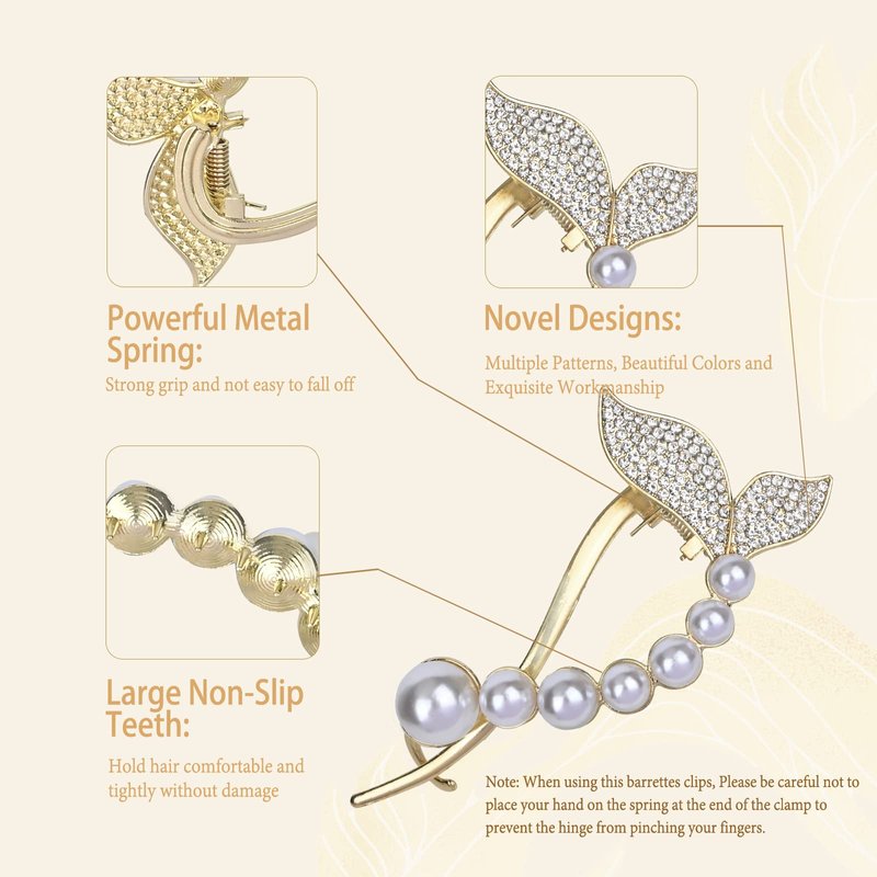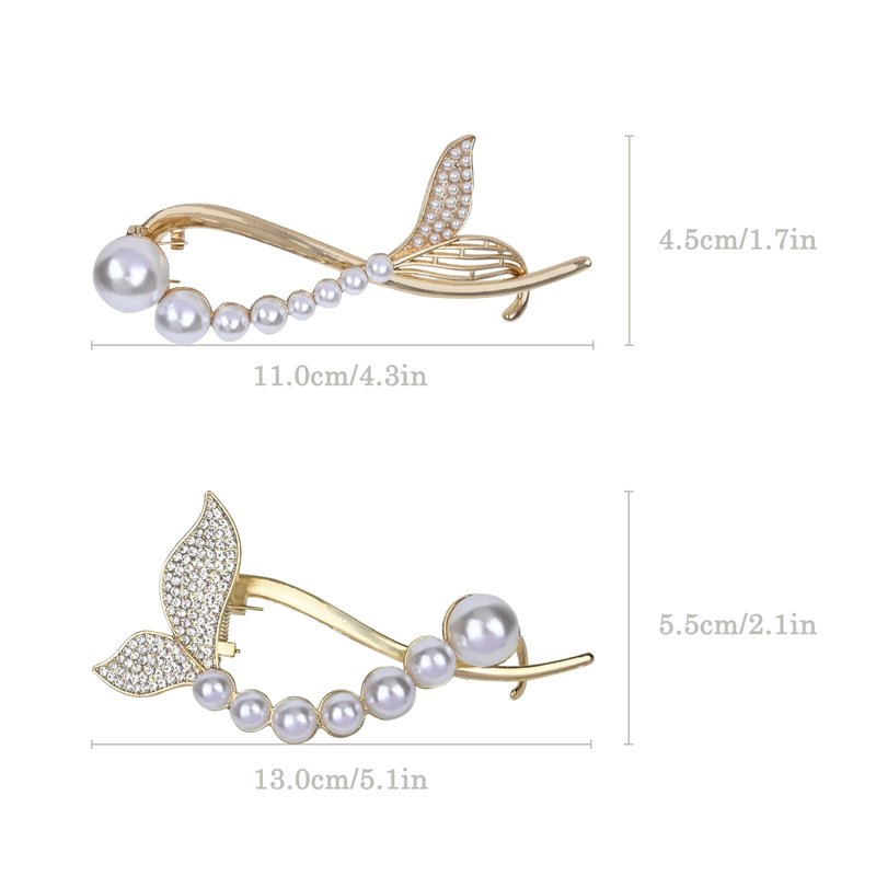 Yonchic 2-Piece Metal Pearl Hair Barrettes Clips, Simple Style Fish Tail Clip, Non Slip Elegant Retro Claw for Thin/Medium Thick Hair, Trendy Multiple Shapes Aesthetic Hair Accessories