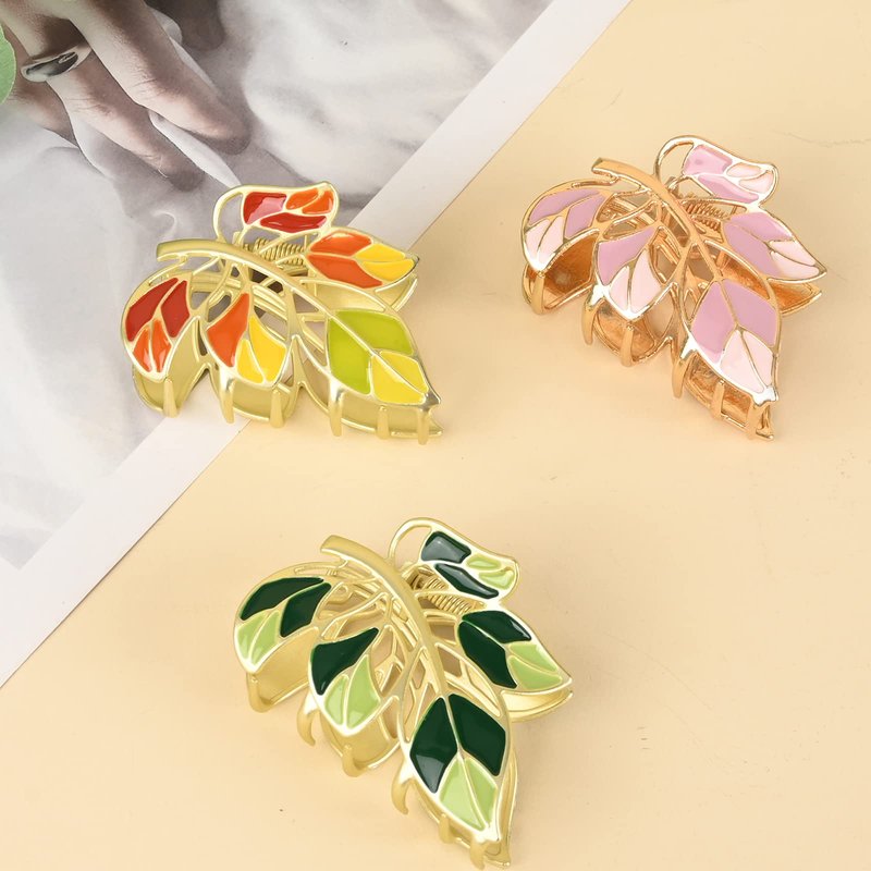 These flower hair barrettes with leaves consist of quality alloy material, not easy to break, fade or rust during long-term use.They are made by fine craftsmanship with nice texture and gloss, smooth in surface, comfortable and beautiful to wear.Perfect for decorating all kinds of hair types, short hair, long hair, straight hair, curly hair, etc. Chic and exquisite design with gorgeous color and brightness make you more eye-catching, elegant and charming.The hair claws clips can holds the hair well in place, no sliding down, without slipping or popping open, hair stayed securely in the combs all day. The new design fashion styling hair clips is great for daily wearing and perfect for party, ceremonies, birthday, banquet, It also protect your hair from water when you are taking a shower.
